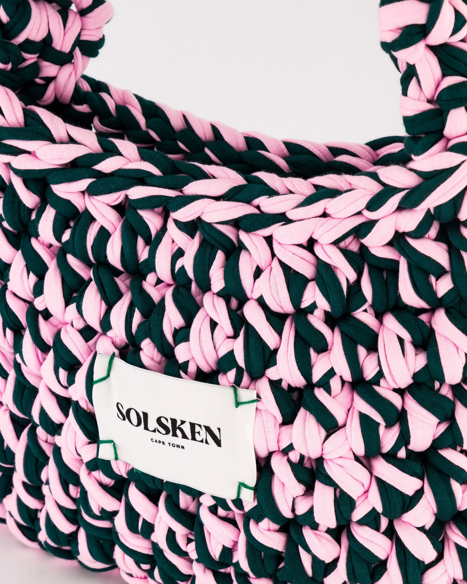 The Abba Bag is crocheted out of upcycled T-shirt yarn, handmade in Cape Town.